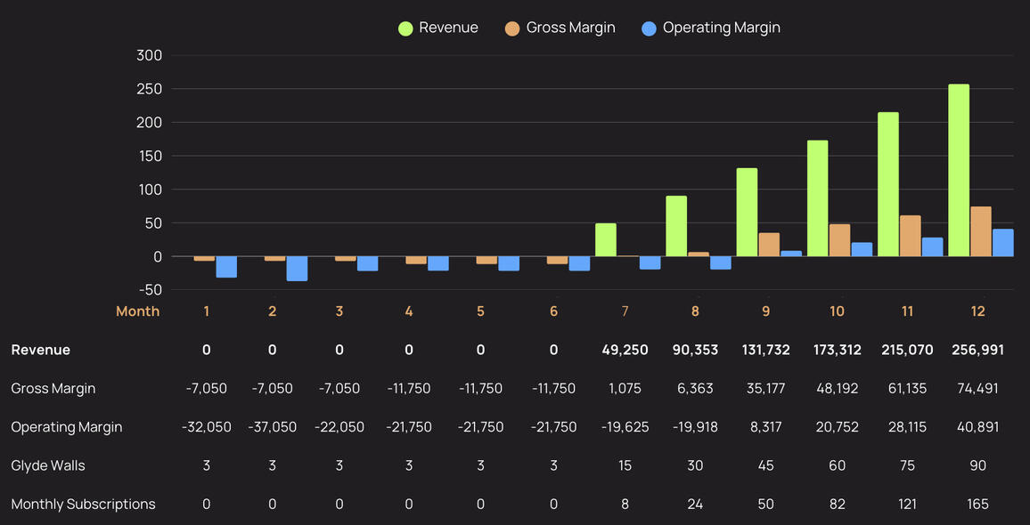 ♦︎ Hire a male and a female trainer > send them Glyde equipment for home > have them record 1 class/day > video is sent to Glyde HQ for processing and posting.♦︎ Build (X) number of Glyde units for inventory (use Ryan's at-home barn for early stage storage)♦︎ Online marketing > ages 35-55 > want to workout from home > hate to workout & want super short workouts > don't want to think about working out.♦︎ Daily articles on blog with simple, clean, short crumbs of digestible content.♦︎ Repeatable daily process that can be automated (person or AI agent).